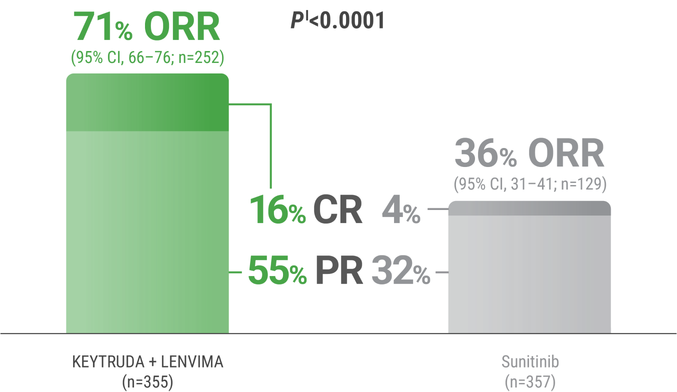 PRb,c: 53% with KEYTRUDA + LENVIMA vs 32% with sunitinib.